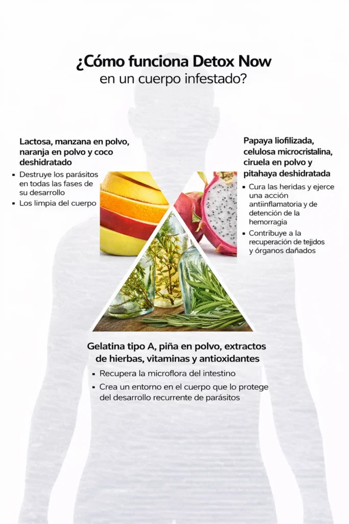 No es el típico laxante químico que encuentras en cualquier droguería. Mi investigación revela que Detox Now es un complejo nutracéutico certificado, diseñado específicamente para neutralizar la infestación por parásitos intestinales. Lo que lo diferencia es su enfoque en la seguridad del hogar: es un producto recomendado para realizar una limpieza profunda sin necesidad de fórmulas agresivas que dañen el hígado.